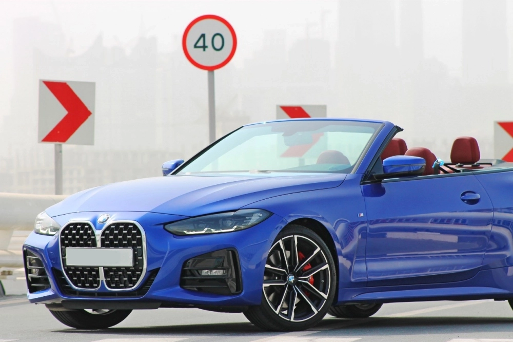 Rent and drive this BMW 420i Convertible 2022-model in Dubai, UAE for AED 700/day & AED 14000/month. Rental cost includes basic comprehensive insurance and standard mileage limit of 250 km/day (AED 5 – AED 30 per additional km applicable). Contact Premium Crystal Car Rental directly for bookings and inquiries.