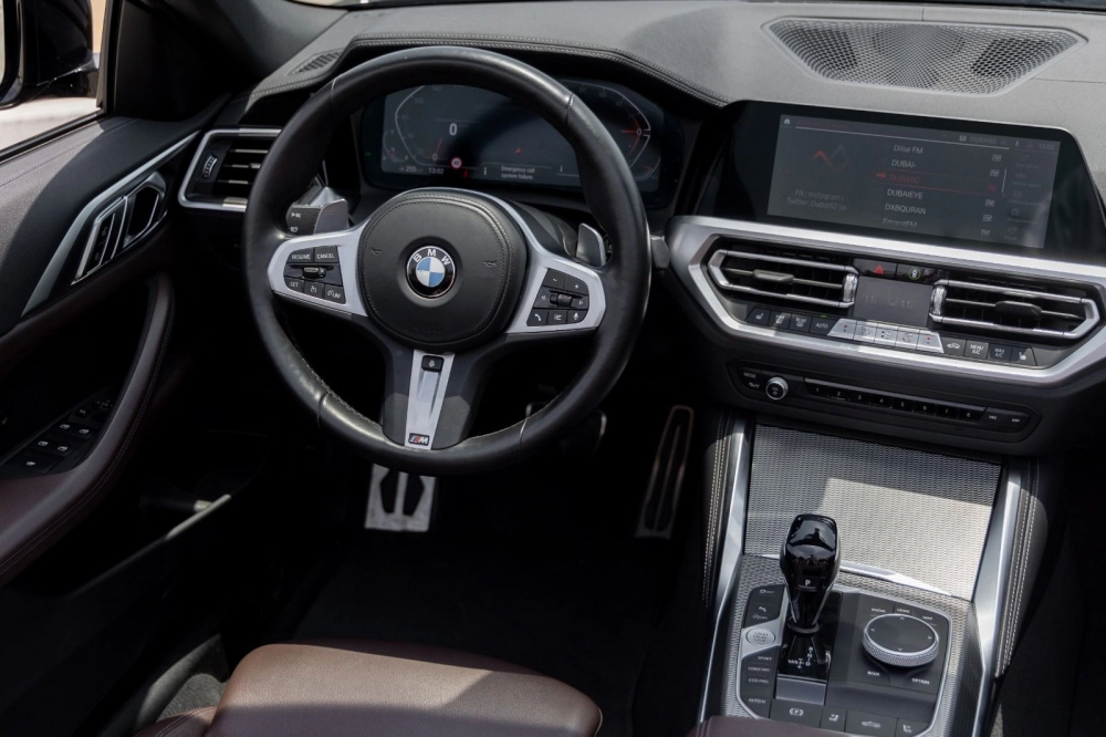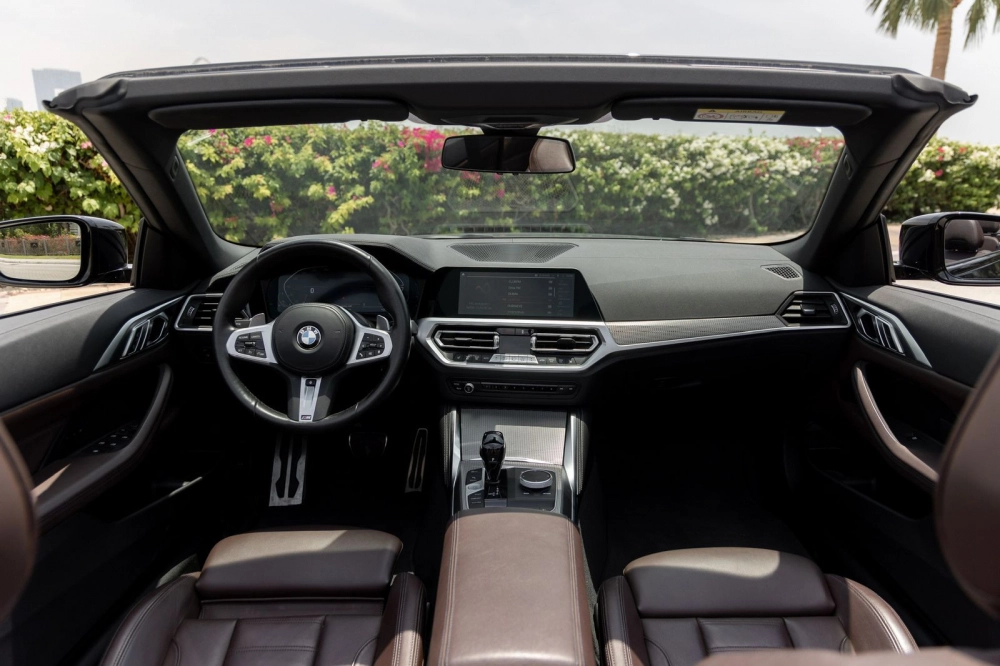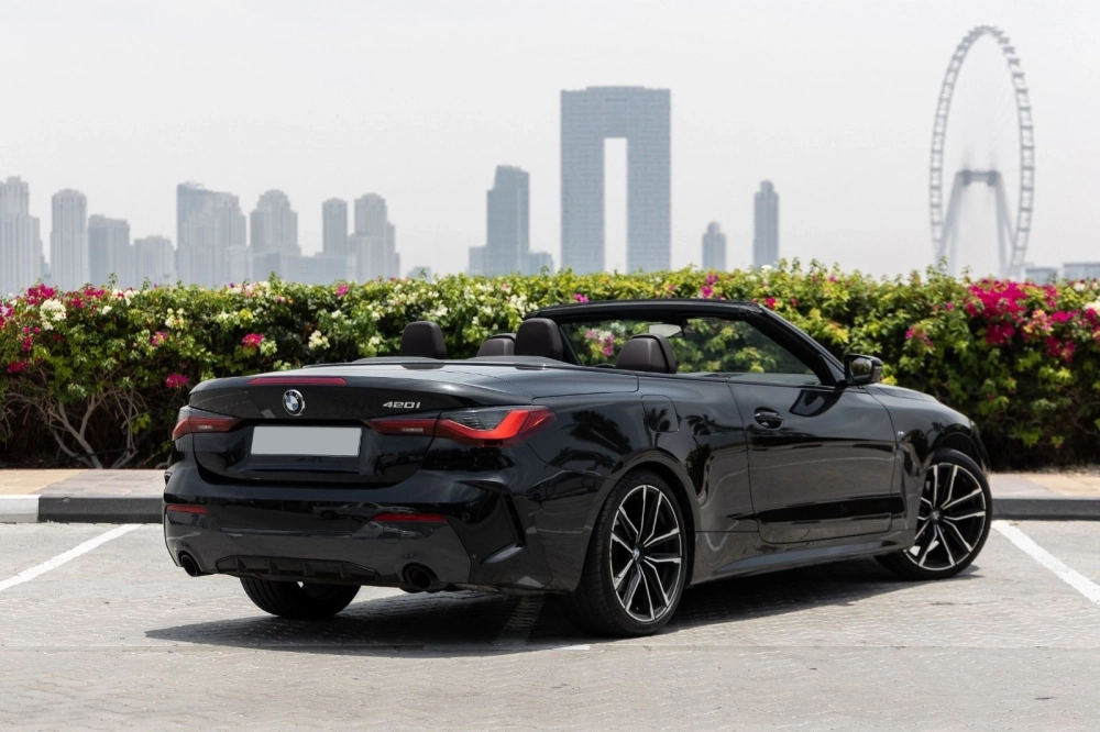 Rent and drive this BMW 420i Convertible 2022-model in Dubai, UAE for AED 700/day & AED 14000/month. Rental cost includes basic comprehensive insurance and standard mileage limit of 250 km/day (AED 5 – AED 30 per additional km applicable). Contact Premium Crystal Car Rental directly for bookings and inquiries.