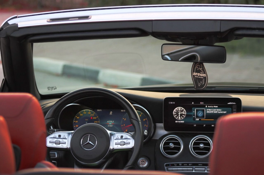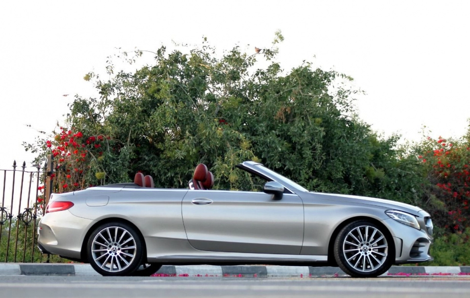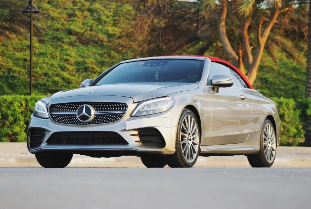 Rent and drive this Mercedes Benz C300 Convertible 2020-model in Dubai, UAE for AED 600/day & AED 10500/month. Rental cost includes basic comprehensive insurance and standard mileage limit of 250 km/day (AED 5 – AED 30 per additional km applicable). Contact Premium Crystal Car Rental directly for bookings and inquiries.