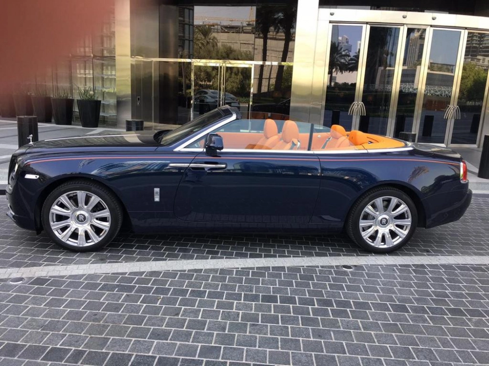 Rent and drive this Rolls Royce Dawn 2017-model in Dubai, UAE for AED 3500/day & AED 61999/month. Rental cost includes basic comprehensive insurance and standard mileage limit of 250 km/day (AED 5 – AED 30 per additional km applicable). Contact Premium Crystal Car Rental directly for bookings and inquiries.
